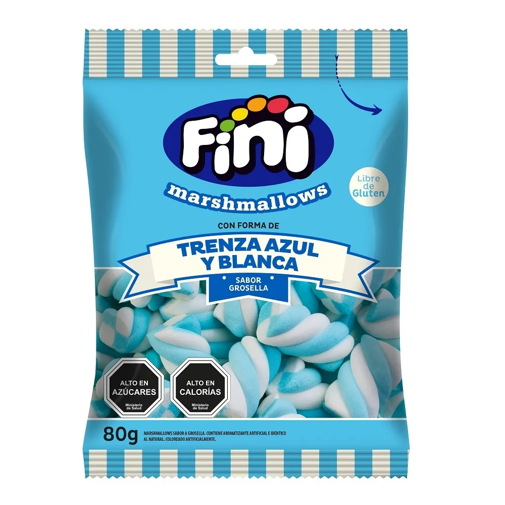 Fini Marshmallows Trenza Azul 80 Grs malvaviscos suaves