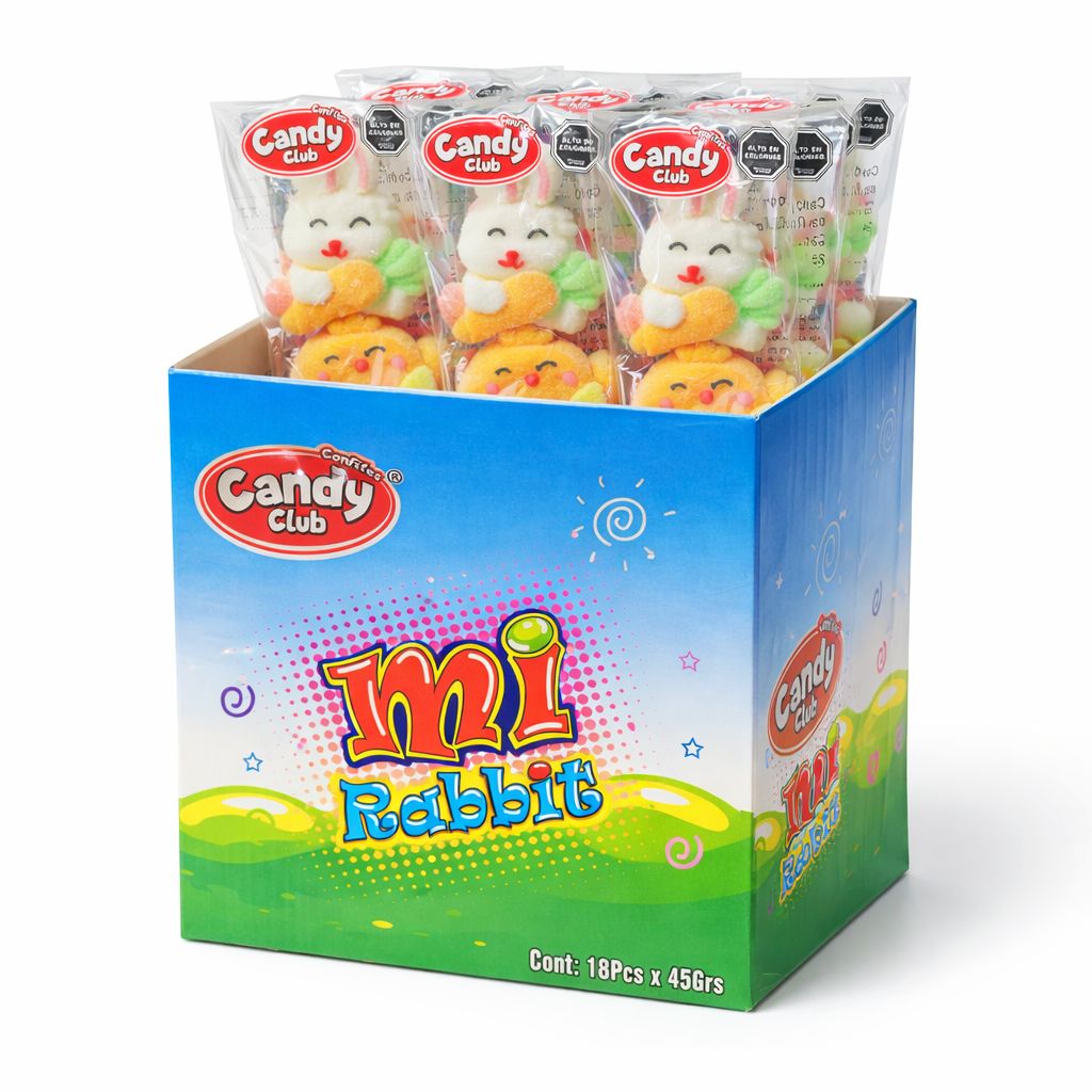 El Marhs Mi Rabbit Candy Club es una excelente alternativa para la temporada de Pascua, ideal para negocios que buscan productos llamativos y de alta rotación. Esta presentación incluye 18 unidades de 45 gramos cada una, perfectas para venta unitaria o para armar canastas temáticas.
